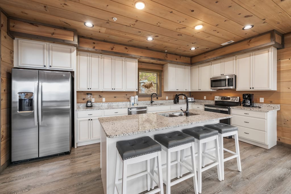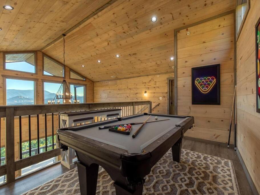 ‼️Before booking, please READ the ENTIRE listing, including Other Things to Note and House Rules, which serves as your rental agreement. A booking request constitutes acceptance of ALL HOUSE RULES in their entirety and complete acknowledgement of listing description from all guests on the reservation. Thank you! 🙂 3,632 Sq. Ft. | Central Location with Dollywood Coaster Views & Panoramic Mountain Views | LESS THAN 5 MINS TO DOLLYWOOD!! 🎢 Perfect for a family retreat or reunion with friends, this remarkable cabin serves as your gateway to outdoor activities, amazing attractions, and everything else Sevierville, Pigeon Forge, and Gatlinburg have to offer! 🛌 Bedroom 1: King Bed 🛌 Bedroom 2: King Bed 🛌 Bedroom 3: King Bed 🛌 Bedroom 4: Queen Bunk Bed 🛌 Downstairs Gaming Den: 1 Queen Sleeper Sofa 🛌 Theater Room: 1 Queen Sleeper Sofa ✨ Indoor, Private, Heated Pool 🌊 ✨ Hot Tub 🧖 ✨ EV Charger (Level 2 / 60 Amp) 🔋 ✨LG Smart TVs with ROKU in Each Room + Living Room + Theater Room + Gaming Den 📺 (Netflix, Hulu, Disney+, Amazon Prime Video, and more - bring your own login info and sign out when you leave) ✨Complimentary WiFi 💻 ✨3 King Beds 🛏 ✨1 Queen Bunk Bed 🛏 ✨Blackout Curtains 😴 ✨Pack 'N Play with Sheets & Mattress 🍼 ✨Clip-on Highchair 👶🏼 ✨3 Luxury, Tiled Walk-in Showers 🚿 ✨1 Tub with Shower 🛁 ✨Board Games & Cards 🃏 ✨Arcade Games 🕹️ ✨Electric Fireplace with Remote and Wall Controls🔥 ✨Fully Stocked Kitchen 🍳 ✨Oven & Stovetop 🥘 ✨Fridge & Freezer 🧊 ✨Dinner Plates, Bowls, Small Plates, Kid Plates, Kid Cups, Wine Glasses, Flatware, Mugs 🍽 ✨Microwave 🍿 ✨Blender 🧋 ✨Drip Coffee Maker ☕️ (bring your own coffee! - 1 bag of ground coffee and coffee filters are provided) ✨Keurig Coffee Maker ☕️ (bring your own pods! - assortment of pods provided) ✨Baking Dishes 🥧 (for brownies or casseroles!) ✨Mixing Bowls 🥣 ✨Waffle Maker 🧇 ✨Toaster 🥯 ✨Outdoor Charcoal Grill 🥩(bring your own charcoal, lighter, and lighter fluid!) ✨Kitchen Towels 🧺 ✨Basic Cooking Utensils 🍳 ✨Breakfast Bar with 4 Stools 🪑 ✨Dining Table with 8 Seats 🪑 ✨2 Queen Sleeper Sofas 🛋 ✨Modern, Luxe Cabin Décor ⚜️ ✨Washer/Dryer 🫧 (laundry pods are provided) ✨Drying Rack for Clothes 👚 ✨Linens/Towels 🧺 (bath towels, hand towels, wash rags, and makeup towels provided) ✨Central A/C ❄️ ✨Keyless Entry 🚪 ✨Complimentary Starter Toiletries 🧻 (make SURE to bring extras!!) ✨Hairdryer 🌬 ✨Gas Fire Pit 🔥 After a long day filled with adventure, curl up on the comfortable living room furniture and enjoy a movie on the large living room Smart TV complete with Disney+, Netflix, Hulu, Amazon Prime Video and more, or browse social media courtesy of the free WiFi. A well-equipped kitchen features plenty of workspaces, all major appliances (and many minor ones!), and everything you need to chef up anything from a quick snack to a lavish brunch and exquisite dinner (just bring your own ingredients!). After dinner, sit around the gas fire pit and roast some marshmallows for s'mores! Our Luxury Mountain View Cabin has 4 bedrooms and sleeps 14 people. Three rooms have KING beds, and the other room has a QUEEN bunk bed. Two couches downstairs (one in the gaming den area and one in the theater) open up to queen-size sleepers for extra guests. If you need to move any furniture, please make sure to move it back. Four full bathrooms means no waiting in line for the shower in the mornings! There's even a washer and dryer for cleaning clothes and/or towels. This cabin is centrally located to all the attractions and restaurants in Sevierville, Pigeon Forge, and Gatlinburg. Enjoy a night swim in your private indoor heated pool. A relaxing soak in the steamy hot tub is the perfect way to wind down your day. Serene surroundings make it the perfect space to enjoy warm company with friends and family. ✨LESS than 5 minutes to Dollywood🎢 ✨15 minutes to Tanger Outlets 🛍️ ✨10 minutes to The Ripken Experience ⚾️ ✨10 minutes to The Island in Pigeon Forge 🎡 ✨10 minutes to LeConte Event Center 🎤 ✨15 minutes to Publix 🛒 ✨20 minutes to Gatlinburg Convention Center 🏬 ✨5 minutes to Parrot Mountain 🦜 ✨15 minutes to Hatfield & McCoy Dinner Show 🍗 ✨20 minutes to Sevierville Convention Center 🏢 ✨15 minutes to Titanic Museum 🚢 ✨20 minutes to Ripley's Aquarium of the Smokies 🐠 ✨20 minutes to Anakeesta 🚡 ✨20 minutes to Gatlinburg SkyBridge 🌁 ✨25 minutes to Ober Mountain 🎿 ✨20 minutes to Soaky Mountain Waterpark 🌊 ✨25 minutes to Sugarlands Visitor Center 🐻 Whatever you choose to do, you’re bound to create beautiful memories beckoning you back to the cozy, peaceful mountain retreat experience. After a day of adventuring, you'll be glad to return to the peace, comfort, and convenience of your Luxury Mountain View Cabin. The mountains are calling; book your stay now! 🏔