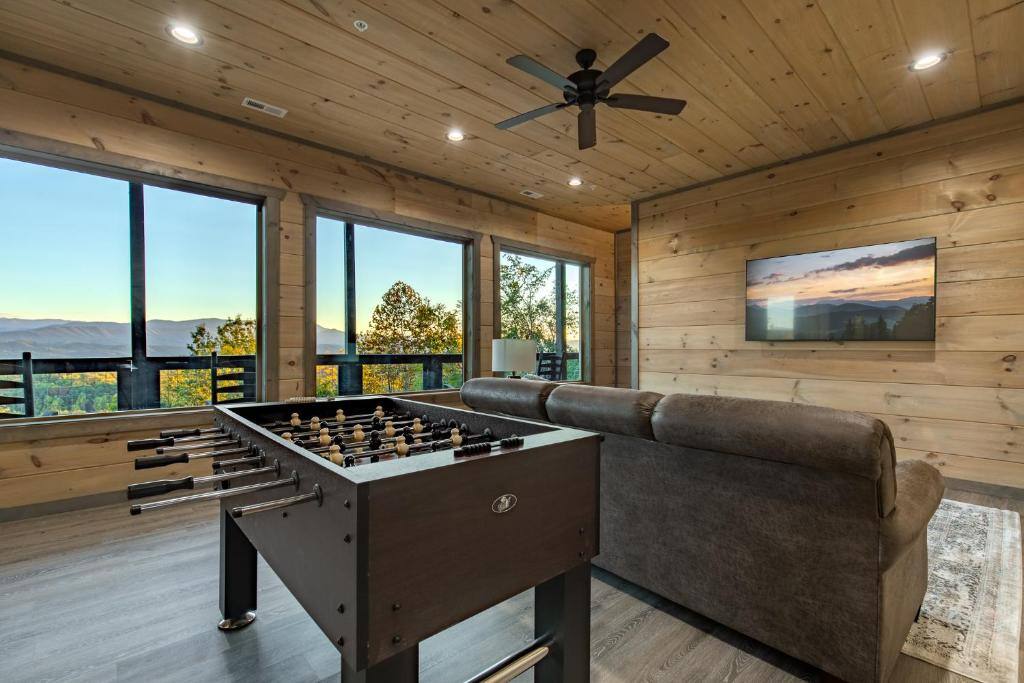 ✅NEW Modern Luxury Cabin with Dollywood Rollercoaster Views & Private Indoor Heated Pool ⭐️LESS THAN 5 MINUTES TO DOLLYWOOD🎢 ✅Hot Tub ✅EV Charger (Level 2) ✅Movie Theater ✅Panoramic Mountain Views ✅Electric Fireplace & Smart TVs ✅Spacious Deck & Outdoor Seating ✅Full Kitchen ✅Pool Table & Foosball Table ~~~~~~~~~~ This newly built 4-bedroom LUXURY cabin sleeps 14. Enjoy a private indoor heated pool & movie theater, gourmet kitchen w/ stainless steel appliances, & MUCH MORE! Book your stay NOW!